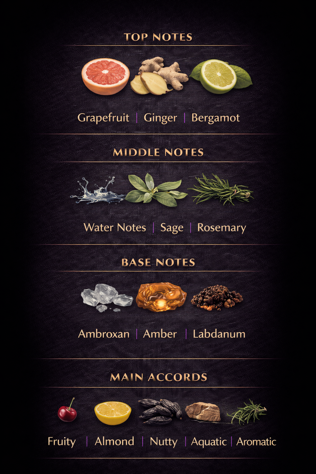 Base Notes: Amber, Musk, Vanilla